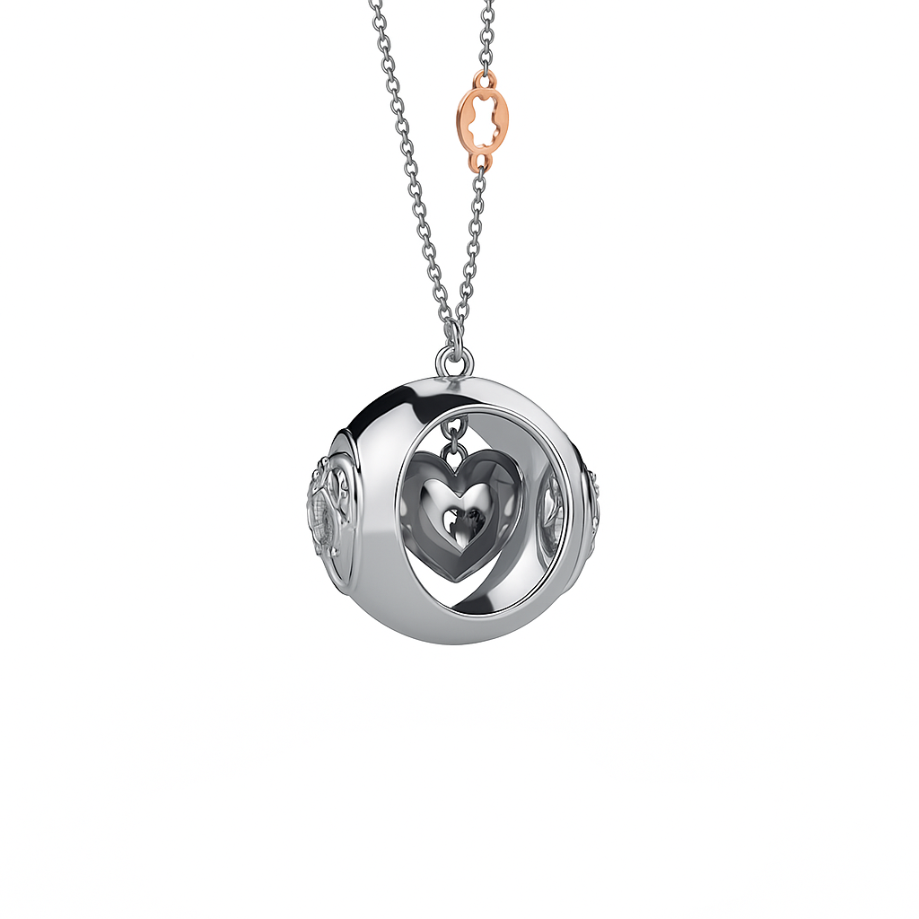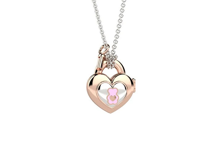 La collana della collezione "Portami con te" è in puro argento 925. Un gioiello esclusivo, un piccolo scrigno ideato per conservare e portare con sè, per sempre, i più dolci ricordi della prima infanzia (dentino, piccola pergamena ect...)